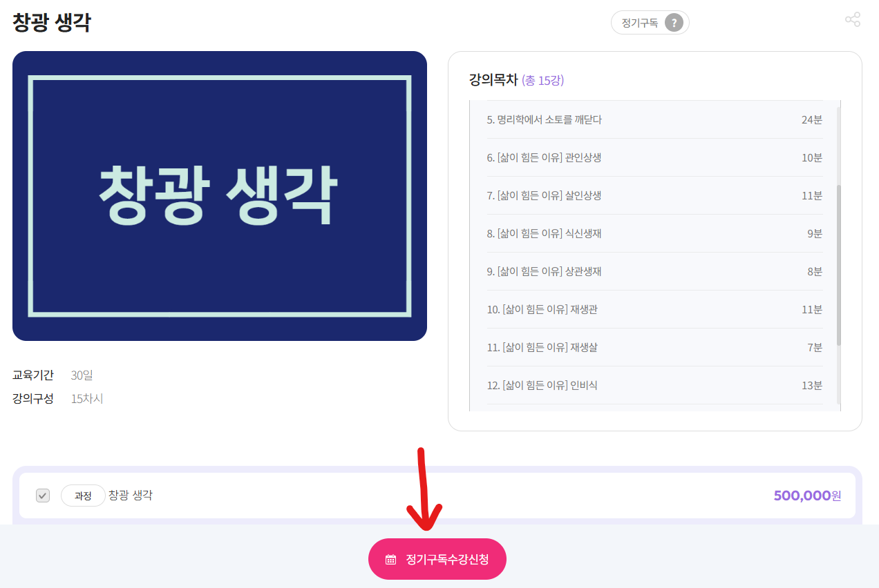 '정기구독수강신청' 버튼을 클릭해야 수강이 가능합니다.